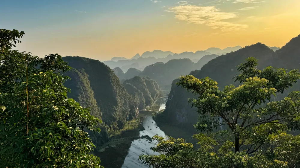 Après votre arrivée, votre chauffeur vous accueille à l’aéroport et vous accompagne jusqu’à votre hôtel dans le Vieux Quartier de Hanoi. Le trajet dure environ 30 minutes, et c’est déjà une immersion. Les scooters remplissent les rues, les klaxons rythment la circulation, et les maisons étroites semblent s’empiler les unes contre les autres. Au premier regard, tout paraît un peu chaotique. Puis on comprend que ce chaos a sa logique. Et Hanoi commence doucement à révéler son charme. 🌇 Une première balade autour du lac Hoàn Kiếm Pour une première découverte en douceur, rien de mieux qu’une promenade autour du lac Hoàn Kiếm. En fin de journée, la ville ralentit légèrement. Les habitants viennent marcher autour de l’eau, des couples discutent sur les bancs et les cafés commencent à se remplir. Installez-vous en terrasse et commandez votre premier cà phê sữa đá, le célèbre café vietnamien glacé au lait concentré. Un moment simple, mais parfait pour commencer le voyage. 🌿 Ninh Binh, une parenthèse nature Après quelques jours à Hanoi, direction Ninh Binh, une région connue pour ses paysages spectaculaires. Les montagnes karstiques surgissent au milieu des rizières et des rivières, créant un décor presque irréel. C’est l’endroit idéal pour ralentir : balade en barque entre les falaises, vélo dans les campagnes, dîner dans un écolodge niché au cœur de la nature. Le soir, lorsque la lumière tombe sur les rizières, l’endroit devient particulièrement magique.